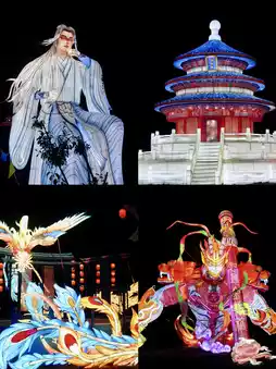 Dozens of traditional lantern displays light up in sequence, decorating the night in a dreamlike fantasy, creating maximum atmosphere~