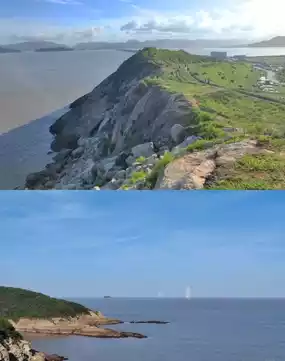 Here, it is a marvelous blend of mountains and the sea. Half is undulating mountains, and the other half is the vast sea. Climbing to the top of the mountain and looking far into the distance, the continuous mountains are like the backbone of the earth, stretching firmly and powerfully into the distance; and the boundless sea, like a huge blue satin, ripples under the gentle caress of the breeze.