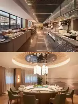The lobby, guest rooms, dining areas, tea rooms, banquet halls, and gym are all nestled within these quaint buildings, blending seamlessly with the ancient town.