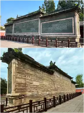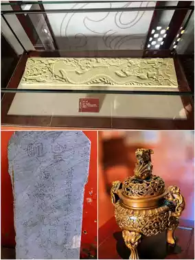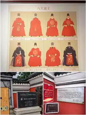 ☑️There is a side hall next to it, with 3D holographic projection made by 👍. There is also a main hall with the names and images of the past kings, ⏫pictures of the nine sons of Longsheng, as well as clothes and hats. Other areas have been basically rebuilt, including Some small exhibits also explain, 🔼There is also a well surrounded by stone footprints and broken square stone pillars.