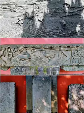 ☑️There is a large crane relief at the door, and a very large luminous pearl. 👉There are also some broken cultural relics and inscriptions. ↙️You can take a closer look. There is a hole in the wall at the door, ⏮The green screen wall is placed there. On the hole.