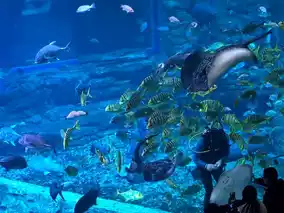 🌸 **Exploring the Deep Blue**: The underwater tunnel is so beautiful! Manta ray is open for business with a smile, please remember to turn off the flash when taking photos~