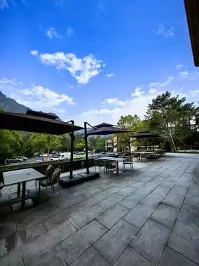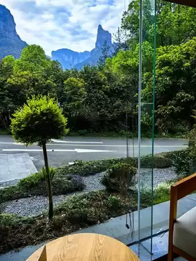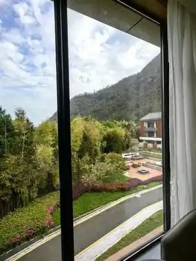 🧩The hotel is surrounded by mountains and water, with verdant valleys and misty clouds all around. When you look up, you see cliffs and greenery everywhere. This is what they mean by 'celestial mountains and seas of clouds, a human paradise on earth'.