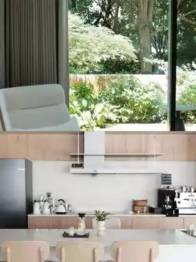 The infinity pool and the lower-level public area fully reflect the design sense of the homestay