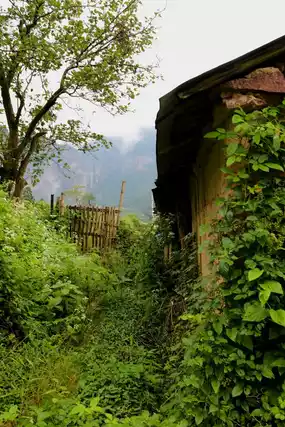 It is said that this place is known as the Shangri-La in Jiangnan. To this day, I am not sure what "Shangri-La" means, but the peaks here are known for their towering heights. The entire Gongyu is majestic and towering, with cliffs stretching endlessly. Each peak stands alone, forming a unique entity. The stone forest and cliffs each have their own charm. In the middle of the mountain depression hangs Gongyu Village, a primitive tribe with only a dozen households. As there are no roads, it is estimated that people have moved out of the mountains, leaving behind the original earth houses for us, the hikers, to enjoy.