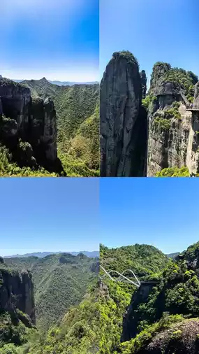 Shenxianju Grand Waterfall: With a drop of over 100 meters, the waterfall plunges straight down with magnificent power. It's especially spectacular during the rainy season, with mist filling the air and frequent rainbows.