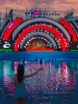 6,700㎡🌊 wave pool - the rush of incoming waves is exhilarating! Live DJ sets for epic water parties🤩, plus EDM festivals every weekend night in July