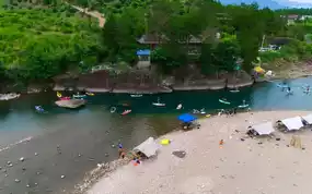 💡 Pebble beach with water only knee-deep, kids can catch fish and touch snails, very cozy with a canopy on the shore