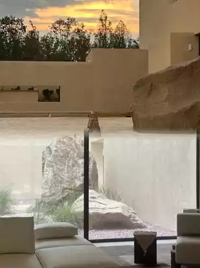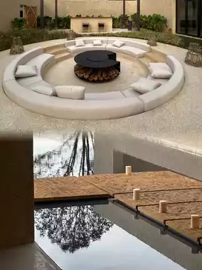 - Natural Elements: Incorporates natural elements such as water and stone 💧🪨, features large glass doors and windows to introduce natural light ☀️, and an open space design that is spacious and bright, reducing any sense of oppression 🌿.