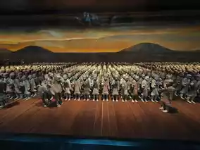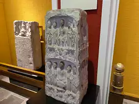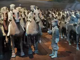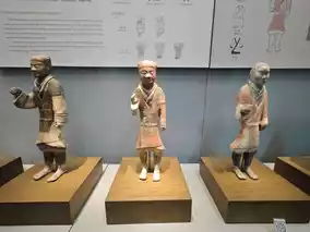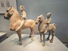 The Xianyang Museum includes the Wenmiao Museum and the Ancient Ferry Site Museum. The museum is housed in a Wenmiao (Temple of Literature) that was reconstructed from the original built in the fourth year of Hongwu in the Ming Dynasty (AD 1371). The museum's precious collections include: jade immortals on horseback, jade amulets, jade figurine heads, painted pottery commanding figurines, and King Lu's tiger tally from the Han Dynasty; gold and silver inlaid tripod, Anyi Xiaoguan bell, and dragon-knobbed Chunyu from the Warring States period; Tang Dynasty chased gold ewer, tri-colored single-humped camel, tri-colored horse, etc. The most famous are the three thousand painted terracotta warriors and horses unearthed from the burial site accompanying Emperor Liu Bang's Changling Mausoleum.
