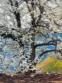| A Dreamy Spring Date. As spring approaches, Jinchuan is covered in a blanket of white pear blossoms, as if covered in snow. The pear blossoms bloom in full, as if telling the romance and beauty of spring. Every year from mid-March to mid-April, the pear blossoms in Jinchuan attract countless tourists to come and enjoy this dreamy spring date.