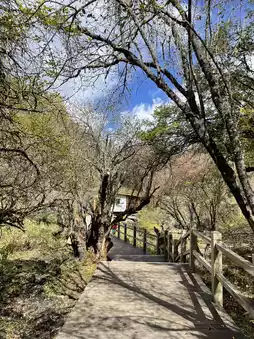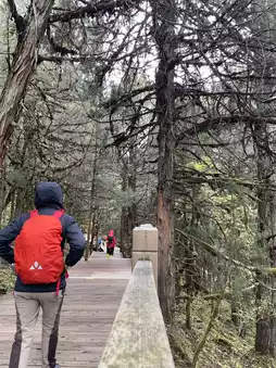 Changpinggou, a nature trail lined with trees on both sides, the destination is more than 20 kilometers. On a day when the weather is not good, you can only walk to the end of the wooden path.