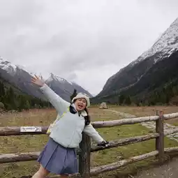 🏔️ Four Girls, Shuangqiaogou Trail on a Cloudy Day ☁️