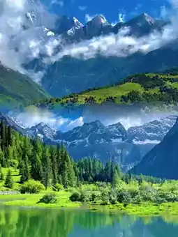 - Afternoon: Enter Shuangqiao Valley Scenic Area (entrance fee: ¥80 + sightseeing bus: ¥70). Take the bus directly to Redwood Forest, where the high-altitude primeval forest contrasts beautifully with the snowy mountains. Stroll along the boardwalk, breathe in the fresh air, and immerse yourself in nature’s tranquility. Next, visit Budala Peak, where the open meadows and white stupas create a perfect backdrop for stunning photos. The crystal-clear waters of Siguniao Lake reflect the snowy peaks like a fairyland. At Nianyuba, you can try an exciting rafting adventure (additional fee) and feel your heart race in the rushing currents.