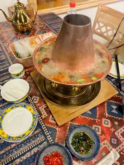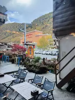 🍲 In addition to being a place to stay, it is also a restaurant and cafe. You have to make a reservation for the restaurant because there are a lot of people coming to eat in the evening. The famous menu is Yak Meat Hot Pot (Fujinshi Milk Meat Soup Pot) and Wild Mushroom Chicken Hot Pot (Kobe Mushroom Chicken Hot Pot). We ordered a small set of Wild Mushroom Chicken Hot Pot (小锅) for about 188 yuan, which can be eaten by 2-3 people. Inside the hot pot, there are chicken, wild mushrooms, vegetables, and dipping sauce. This place is famous for its Yak Meat Hot Pot. For those who love meat, you must try it. For dessert, order the yak milk yogurt (青稞牦牛酸奶), a unique sour taste, for about 28 yuan. In addition, the shop also has many drinks and coffee to choose from.