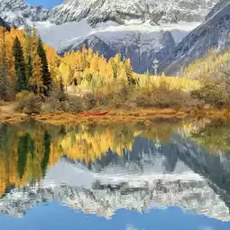 • Mount Siguniang - Shuangqiaogou (四姑娘山 - 双桥沟): Yaomeifeng Peak (幺妹峰) rises against the blue sky, surrounded by red maple leaves and golden birch trees casting colorful reflections on the lake. Every moment here is filled with grandeur and vitality, immersing you in Tianse's most beautiful autumn dreamscape.