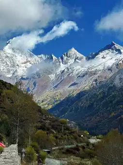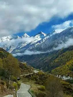 Walk along the road beside the homestay, with winding paths, golden trees, and snowy mountains in the distance all in one frame, every snap on your phone is a "flood of questions on social media" series!