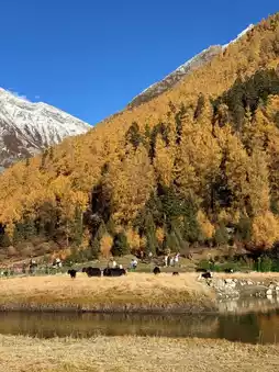 The autumn in Lixiaolu is truly stunning! 🍁 This hidden gem in Aba Prefecture features golden trees against snowy mountains and blue skies, making every snapshot wallpaper-worthy. Especially on clear days after snowfall, it’s like a fairyland on earth!