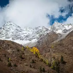 · Majestic Snowy Mountains: Peaks crowned with pristine white snow
