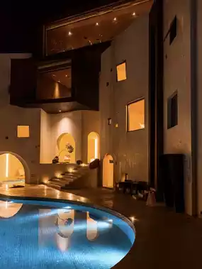 Outdoor swimming pool, indoor independent hot spring pool, bookstore, restaurant, bar, souvenir shop, etc.