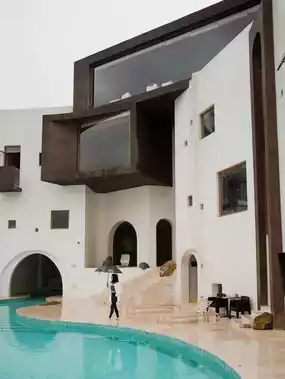 There is an infinity pool, a public living room and a tea room in the independent courtyard.