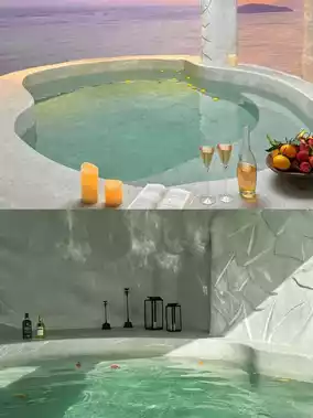 It has a Santorini vacation vibe! A relaxing and comfortable feeling, very beautiful and photogenic!
