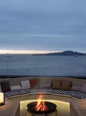 Here, we discover the beauty of Xiapu—hidden in the play of light and shadow on the tidal flats, the tranquility of the islands, and every intimate encounter with nature. At dusk, the twilight dyes the sea amber, and the sunset glow spills over the horizon, gently embracing the windmills and fishing villages along the shore. As night falls, the tide laps softly against the embankment, stars dip into the sea, and the glow of fishing boats mirrors the constellations—mountains and ocean quietly embrace. Baisui borrowed a streak of light from the sky, transforming into a "glowing cliffside hotel." 🌠