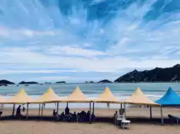 🌇 Xiaohao Beach: Photo spots: Seaweed pavilion + beach rocks, sunset hues + returning fishermen.
