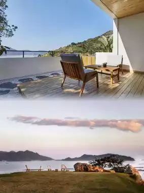 - Room Facilities: Rooms feature wood designs with bathtubs, oversized windows, and Kingkoil mattresses. Some rooms have private courtyards, and most offer direct sea views 🌅.