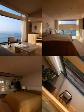 🌅 Must book a sea view room! You can watch the sunset lying in bed! When you open the curtains, the whole sea floods in~ The small balcony chair is perfect for zoning out, falling asleep to the sound of waves at night, and waking up to the sunrise in the morning—so healing you’ll want to stay in bed forever😌