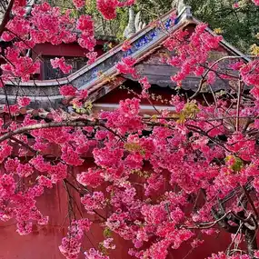 Every March and April, the temple's cherry blossoms are in full bloom, like a painting by Hayao Miyazaki. It is said that these cherry trees were planted by Japanese monks in Guangfu Temple during the Ming Dynasty and have a history of more than 400 years. These cherry trees were introduced from Japan and are of the "Fuji Sakura" variety.