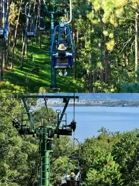 1️⃣Cable car enthusiasts can take a one-way ride up (careful if you fear heights). The semi-open vintage cable car sways gently for 20 minutes, offering gradually expanding views of Lake Qionghai