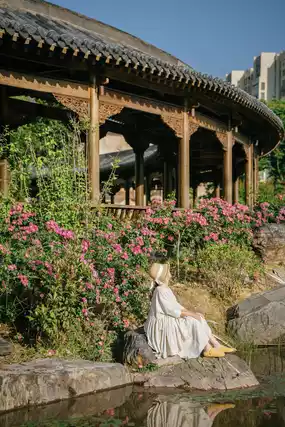 Huaiyuan Pagoda ➡ Tang Poetry Garden ➡ Sunshui Bridge ➡ Tang Style Archway ➡ Huizhou Pavilion ➡ Verbena Flower Sea ➡ Qiongdou Building ➡ Wait for the lights to come on at night to see the night view