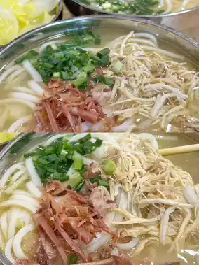 The copper pot noodles at the Huili Chicken Noodle Restaurant are very ceremonial. The Erkuai noodles are more chewy than ordinary noodles, and the soup is indeed salty. It is recommended to ask the owner to put less ham. Locals at the same table recommended adding mint leaves to unlock a new way to eat.