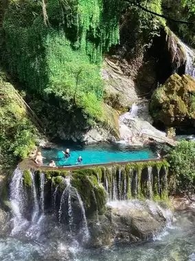40℃ thermal waters cascade down cliffs – soak while rainbows form