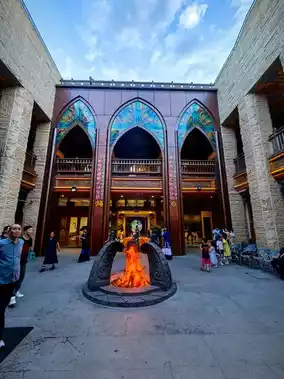 💗Other tips: Tang Garden is best visited at night. When the lights come on, climbing the city wall to see the tower is absolutely stunning. By the colorful fountain, as the Yi ethnic music plays, locals dressed in traditional Yi costumes dance joyfully, creating a vibrant atmosphere. The most delicious authentic Puge black pig barbecue in Xichang is also right next to Tang Garden. Inside the garden, you’ll find a dazzling small night market and various branded milk tea shops, making it a great place for an evening stroll or meal.