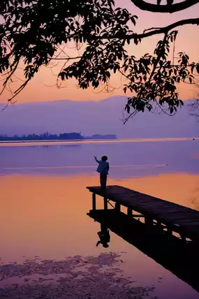 The sunrise at Qionghai Lake is breathtaking. It’s recommended to arrive at “Diaoyutai” by 7:30 AM to take atmospheric photos of the purple sky over the wooden boardwalk by Qionghai Lake—romantic beyond words!