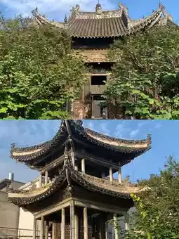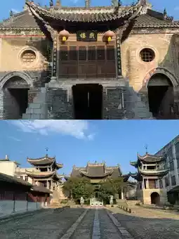 Shanxi-Shaanxi Guild Hall: Located on the east side of Jingziguan Ancient Street, built during the Daoguang period of the Qing Dynasty. It was funded by merchants from Shanxi and Shaanxi provinces. It includes a main gate, theater building, corridor building, bell tower, Chunqiu Pavilion, rear hall, and roll shed. The front and rear eaves of the building feature six sets of wood carvings, including 'Tang Monk's Journey to the West', with exquisite carvings.