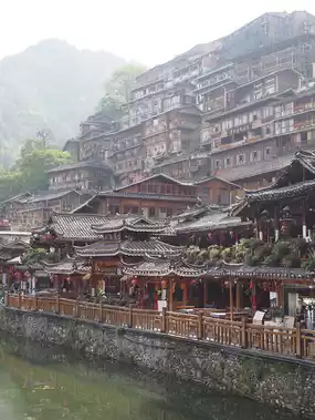 It is the largest Hmong ethnic village in the world. It is a 5A tourist attraction in China in Guizhou Province. We walked around the village all day and there was a train to take us up to the viewpoint on the top of the mountain. There are many shops in the village. Famous Chinese coffee shops are scattered everywhere. There is also a museum about the Hmong people. You can walk around.