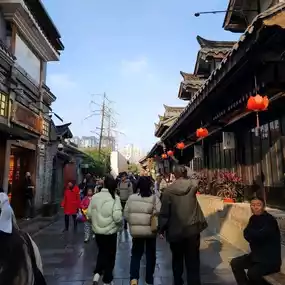 This trip, there was very little time. We landed at 5 pm and arrived at the accommodation at almost 7 pm. Then we went to take pictures at the IFS building next to the hotel, went out to find something to eat, and came back to rest because in the morning we booked a tour to Xiling Mountain. We had to leave the accommodation at 6:30 am. The car left at 7:20 am. It took about 2 hours to reach Xiling. Then we walked to the cable car to go up the mountain. We stayed at Xiling until 4:20 pm. We took the car back to the city at almost 7 pm and then went out to visit SKP. We rode a bicycle in the city for a bit before returning to the accommodation. In the morning, we went to the park and the wide and narrow alleys. In the afternoon, we took the train to Chongqing.