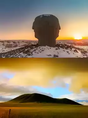 🚘 Afternoon: Drive through the Xilinhot Volcano Line and visit the "Xilingol Grassland Volcano National Geopark" to enjoy the winter volcano grassland scenery.