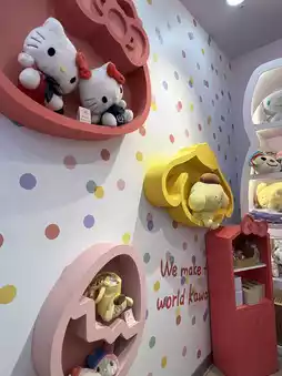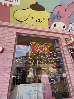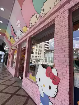 Its exterior wall is made of retro culture stone wall 🫶🏻 and there is a 230 cm HELLO KITTY large three-dimensional graphic 🤪🤪 on the glass