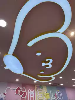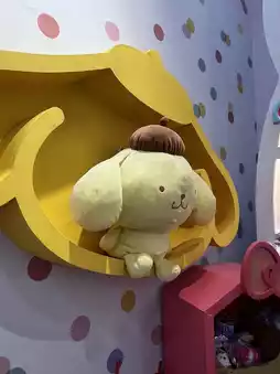 And the ceiling will see HELLO KITTY and pudding dog three-dimensional design 🤓 shelves are still romantic pink color 😬 girlish heart really explode 🤭🤭