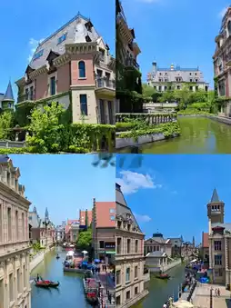 3⃣ Oil Painting Village: Yellow cottages straight out of a fairy tale.