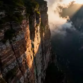 - Flying Divine Stone: A 20-meter-high solitary rock stands on the cliff edge, seemingly about to fall but has stood firm for millennia. Legend says it is a piece of stone left by Nüwa when mending the sky. Using a telephoto lens highlights its danger and uniqueness.