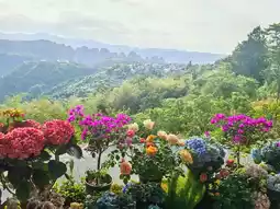 Standing on the mountaintop, you can enjoy a panoramic view of the green mountains and waters.