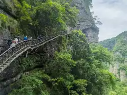 To climb the Flying Dragon Plank Road, you need to purchase an additional ticket (20 yuan), and climb up 999 steps in one go. The subsequent path is mainly flat. Most tourists will choose this route, as the scenery is better, it's not difficult to climb, and it includes a glass walkway and a rope bridge.