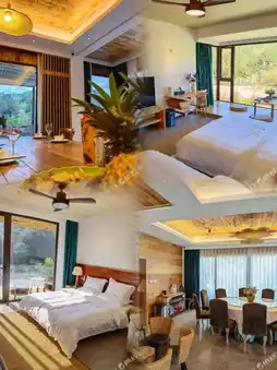 The homestay has 12 uniquely named rooms, each representing a month of the year. Room types vary, including garden-view rooms with courtyard vistas, mountain-view rooms with bathtubs for soaking while enjoying the scenery, and spacious lake-view rooms with panoramic views of the water and mountains. Rooms are fully equipped with smart toilets, smart trash cans, smart showers with visible water temperature, and smart curtains for a perfect start to the day at the touch of a button. Some rooms feature bathtubs for a relaxing soak after a day of adventure. The bedding is soft and comfortable, and the toiletries are high-quality, with thoughtful details everywhere.