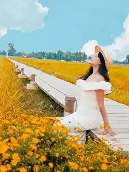 The background of the photo with the panda is a golden rice field, which makes the photo very good.