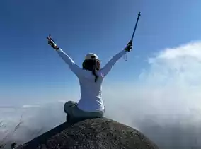 The whole journey is 9 km with a total ascent of 900 m. The last section of the climb requires both hands and feet, and the descent is all on wild paths. Many paths are slippery, and most are steep gravel roads. The mountain path is a small path made by people. You can follow the red and blue ribbon markers and travel with a companion. Do not walk alone!